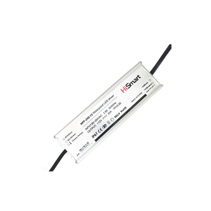 Power supply 12V, 20A, 240W, PFC, IP67. Features:Built-in power factor correction PFC.Cooling by free air convection.Protections: short circuit / overload / over voltage / over temperature.IP67 design for indoor or outdoor installations. SpecOsta kohe, viimased eksemplarid laos!