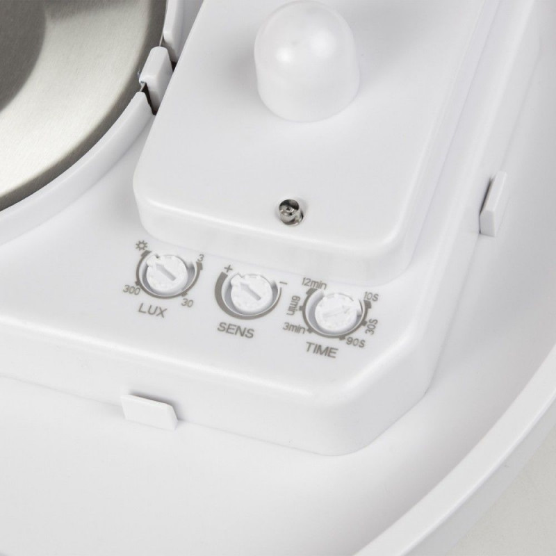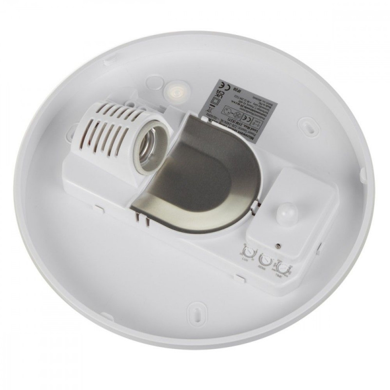 | Other features | Manufacturer: Maclean Model: MCE309 Color: white Diameter: 27 cm Supply voltage: 220-240 V/AC Power frequency: 50/60 Hz Lighting sensor: 3-2000LUX (adjustable) Time delay: min. 10s +/-3s, max. 12 min +/-1 min. Maximum load: 25 W Bulb thread: E27 Additiona |
