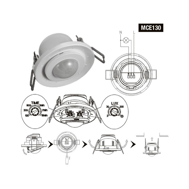 Mitmefunktsiooniline seinasisene lüliti liikumisanduriga, mis on varustatud kõrge tundlikkusega infrapunaanduriga. MCE130 on seade, mis võimaldab laia funktsionaalsust ja aitab säästa elektrienergiat. Toode võimaldab koormuse automaatset sisselülitamist, kui tuvastatakse liikumine tuvastusväljas tänu infrapunaandurile. Tänu valgusandurile saab seadet seadistada nii, et see töötab ainult kindlal kellaajal.