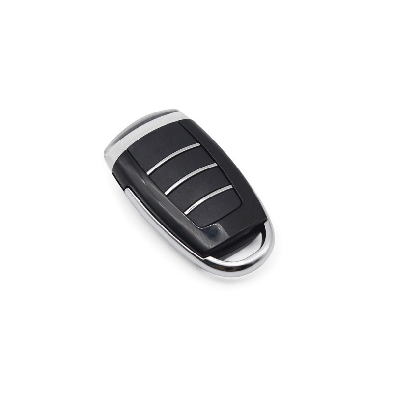 Technical data: Frequency: 433MHz. Communication protocol: EV1527 (Compatible with FP527, FP1527, EV1527, HS1527, SCL1527, RT1527) Control distance: 50-100m (open space). Number of buttons: 4. Operating voltage: 3V (battery CR2032). Operating current: < 25mA. Standby current: < 2uA. Transmission power: > / =10mW. Transmission current: < 10mA. Transmission speed: 50-60kHz. Material: metal, PVC. Dimensions: 69mm x 40mm x 12mm. Weight: 34g. Color: black.