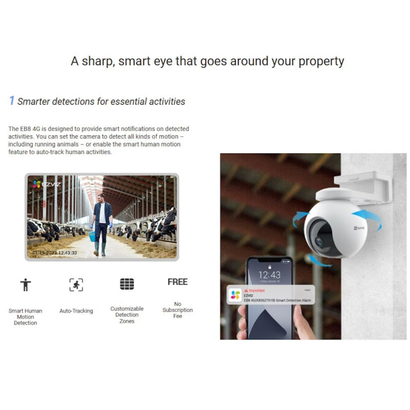 Täiendage EZVIZ EB8 4G-ga – Ülim Päikesevalmis, 360° Nutikas Turvakaamera!EZVIZ EB8 4G pakub ületamatut väliste turvalisust 4G ühenduvuse, AI tuvastuse ja täieliku 360° katvusega. Kujundatud kaugjälgimiseks, päikesetööstuse efektiivsuseks ja intelligentse kaitse tagamiseks, on see kaamera ideaalne lahendus kodudele, ettevõtetele ja võrguvabadale kohtadele.