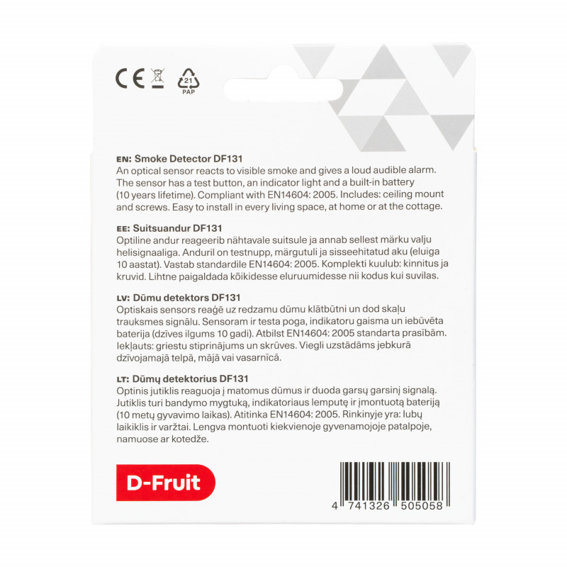 Andur vastab Euroopa ohutusstandardile EN14604:2005, tagades suurepärase usaldusväärsuse. Paigaldamine on kiire ja mugav, kuna komplektis on kaasas kõik vajalikud tarvikud – kinnitus ja kruvid. Sobib ideaalselt paigaldamiseks korteritesse, eramutesse ja suvilatesse.