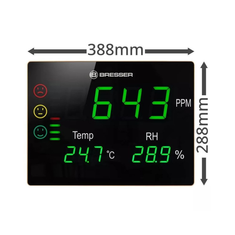 BRESSER CO2 mõõtmisseade Smile XXL koos valgusfoori ja eriti suure LED-ekraaniga