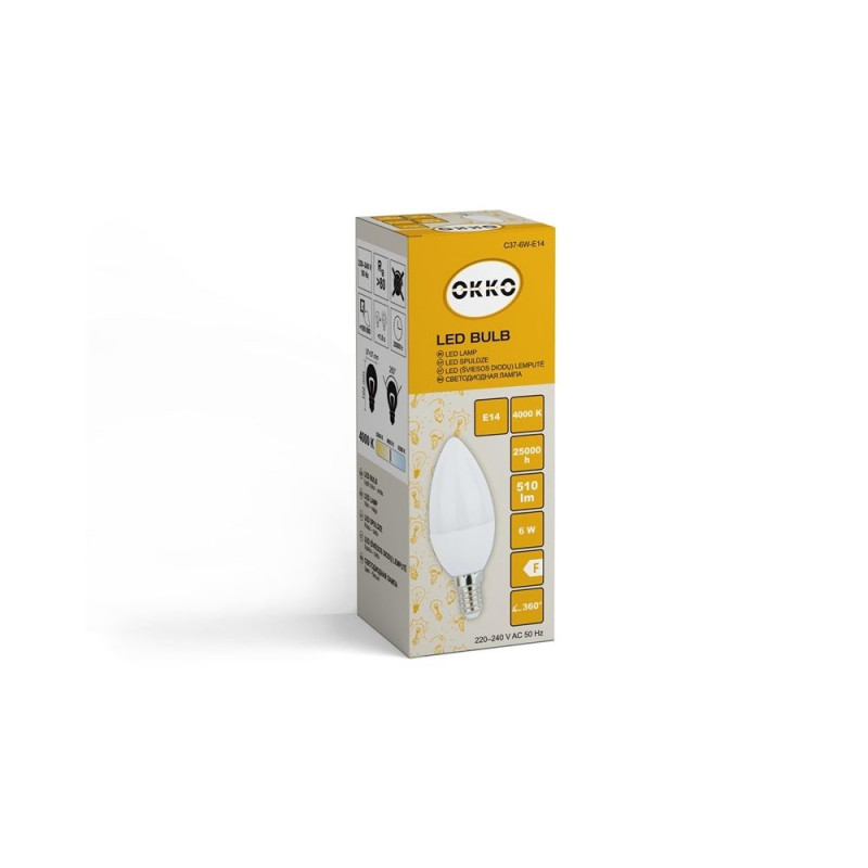 LED BULB C37 6W E14 510LM 4000K MATTE матовое покрытие обеспечивает мягкое, не ослепляющее освещение, создавая уютную атмосферу в вашем доме.