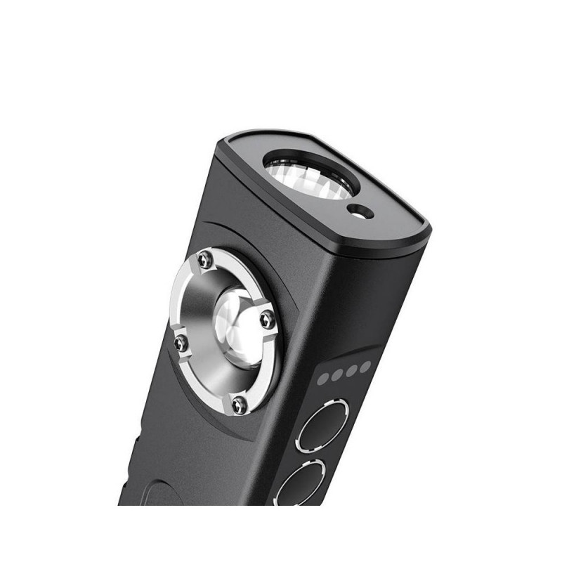 Superfire G20 taskulamp üllatab oma suurte võimalustega, hoolimata oma väikesest suurusest. Lisaks tavalisele valgustusele pakub see ka punast laserit ning tänu oma IP44 veekindlusele saate seda kasutada peaaegu igasugustes tingimustes muretult. Seade töötab ühe laadimisega kuni 3-6 tundi ning vajadusel saate seda kasutada ka praktilise akupangana. Taskulambi kasutamist hõlbustavad praktilised elemendid nagu spetsiaalne klamber, konks ja magnetiline alus.