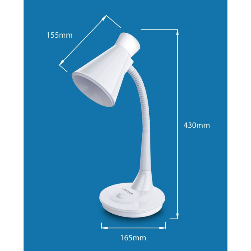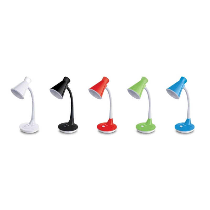 Laualamp suure, stabiilse alusega. Paindlik vars võimaldab lampi seada suvalise nurga alla. Lambis saab kasutada E27 keermega LED-pirne võimsusega kuni 12W.