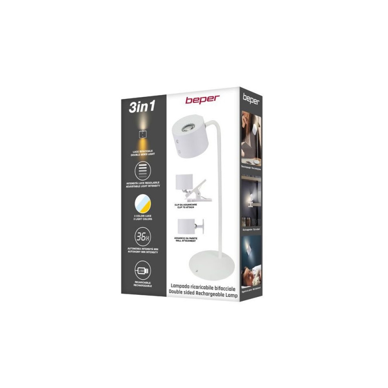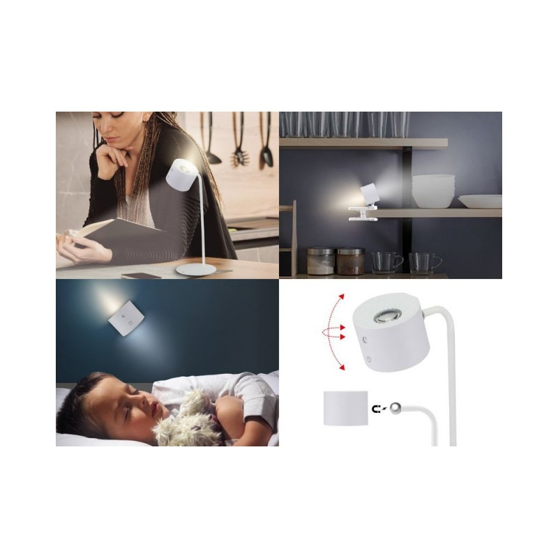 Heleduse tasemed: 3 reguleeritavat seadet Värvi kohandamine: puutelüliti valguse värvi hõlpsaks reguleerimiseks Magnettarvikud: sisaldab alust, klambrit ja seinakinnitust mitmekülgseks positsioneerimiseks Öörežiim: õrn valgustus reguleeritava heledusega Toide: taaslaetav Disain: paindlik ja kaasaskantav erinevatele suundadele Paigaldusvalikud: saab kasutada lauaplaadile, klambriga või seinale kinnitamiseks