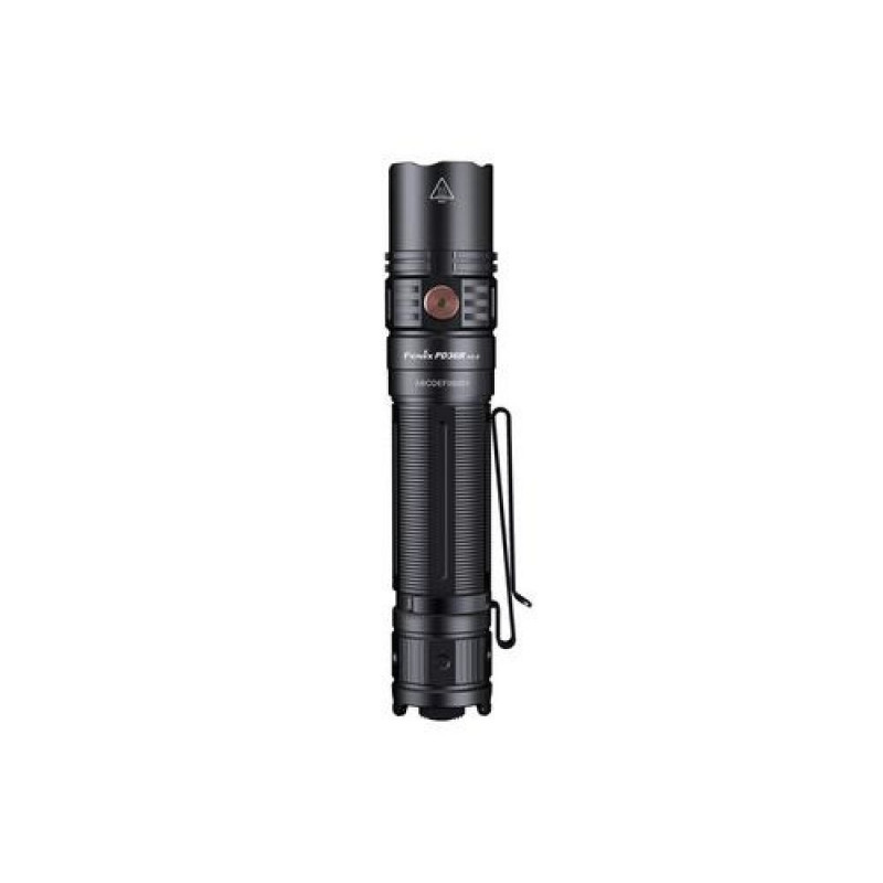 Illuminate the night with the Fenix PD36R V2, a high-end flashlight designed for those who demand unmatched reliability and performance. Project a powerful 1700 lumens of brightness up to an impressive 396-meter beam throw, ensuring that every path you take is brightly lit and clear. The Fenix PD36R V2 offers the convenience of USB Type-C charging, including 18W fast charging that rejuvenates your flashlight to full power in a mere 2.5 hours. With an astounding 60-day runtime, this flashlight is an invaluable companion for extended outdoor adventures, ensuring you're never left in the dark. It’s meticulously designed with a versatile 2-way body clip for effortless attachment, allowing for hands-free carry whenever needed. No environment is too harsh for the Fenix PD36R V2 as it boasts a remarkable waterproof rating of IP68, ensuring optimum functionality even in the wettest conditions. Even with the dust cover removed, the flashlight’s inner waterproofing keeps water at bay, upholding the integrity and performance of your device. Choose the Fenix PD36R V2, and step into a world of unrivaled illumination and enduring quality.<br><br>- Turbo: 1700 Lumens, 3.5 hours, 1299 feet<br>- High: 800 Lumens, 4.25 hours, 879 feet<br>- Med: 350 Lumens, 7.75 hours, 581 feet<br>- Low: 50 Lumens, 50 hours, 220 feet<br>- Eco: 5 Lumens, 482 hours, 63 feet<br>- Strobe: 1700 Lumens<br>Fenix PD36R V2.0. Flashlight type: Hand flashlight, Product colour: Black, Housing material: Aluminium. Shockproof up to: 1.5 m, International Protection (IP) code: IP68. Lamp type: LED, Light output (min): 5 lm, Light output (max): 1700 lm. Charging source: USB, Battery capacity: 5000 mAh, Battery recharge time: 2.5 h. Width: 26.4 mm, Depth: 140.7 mm, Height: 26.4 mm