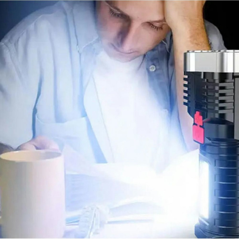- Taskulambil on väga võimas valgusallikas – LED COB diood (külg) ja 5 T6 tüüpi LED-dioodi (ees).