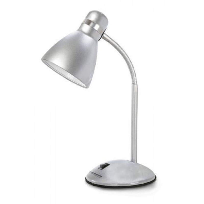 Desk lamp with a large, stable base. The flexible arm allows you to set the lamp at any angle. The lamp can be installed with LED bulbs with an E27 socket and a power of up to 12W.Esperanza ELD113S. Product colour: Silver. Fitting/cap type: E27, Number of bulbs: 1 bulb(s), Bulb power: 12 W. Control type: Buttons, On/off switch location: Article, Cord length: 1.2 m. Power source type: AC, Input voltage: 220 - 240 V, AC input frequency: 50 Hz. Height: 360 mm, Width: 142 mm