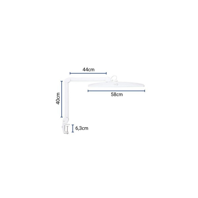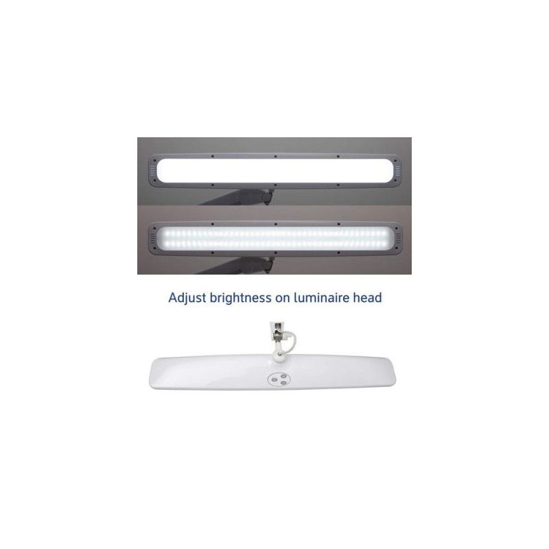 High-performance LED lamp<br>Special lamp for demanding professionals: Ideal for work in laboratories, workshops,<br>technical offices and studios<br>Powerful working environment promotes concentration, especially suitable for precise<br>work, quality assurance or assembly<br>Convenient: steplessly dimmable<br>Glare-free working and homogeneous light distribution<br>Extremely economical: State-of-the-art LED technology<br>Technical safety concept Made by MAUL<br>Robust metal arm<br>Three-dimensional adjustable lamp head for optimum illumination of the workplace<br>Touch control panel on lamp head for convenient dimming, switching on and off<br>Illuminance of the lamp:<br>5140 lux illuminance at 35 cm distance<br>Colour temperature per light source:<br>6500 Kelvin (daylight white)<br>Number of light sources:<br>1<br>Energy efficiency class per light source:<br>D (spectrum A to G)<br>Weighted energy consumption per light source:<br>19 kWh/1000 h<br>Life per light source (L70B50):<br>10000 h<br>Useful luminous flux per light source:<br>2976 Lumen<br>Base:<br>Clamp<br>Material:<br>Arm: metal<br>Dimensions:<br>Height: 50 cm - Arm: lower arm length 40 cm, lower arm length 44 cm - Head: 8,5x58 cm - Base: clamping width: 1-6,3 cm<br>Movement:<br>Head: inclinable, rotatable - Arm: inclinable, rotatable<br>Position of the switch:<br>Lamp head<br>Environmentally friendly and safe packaging, recyclable<br>Technical safety concept Made by MAUL: we never include a lamp or illuminant in our range unless it has successfully passed intensive testing. The safety of the LED workstation lamp MAULexplore, dimmable is guaranteed by our optical, electronic and mechanical development team as well as production engineering teamMAUL 8205602. Product colour: White