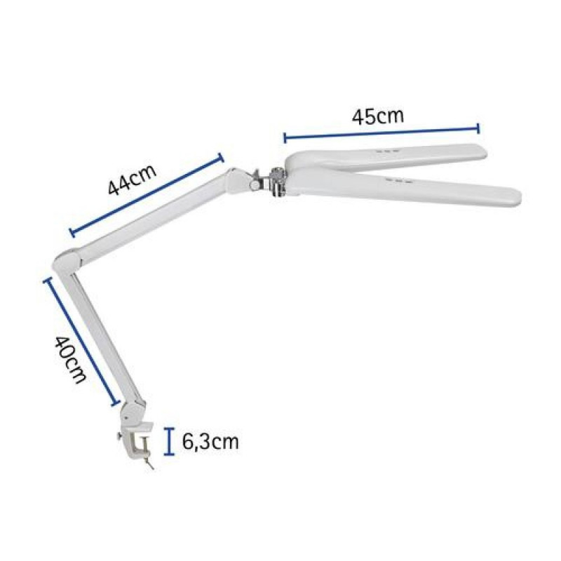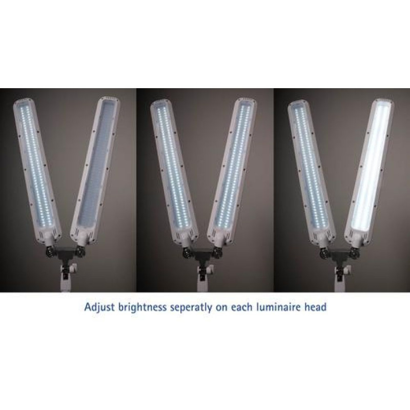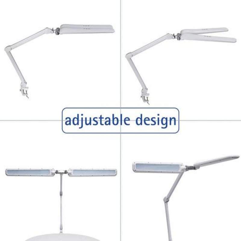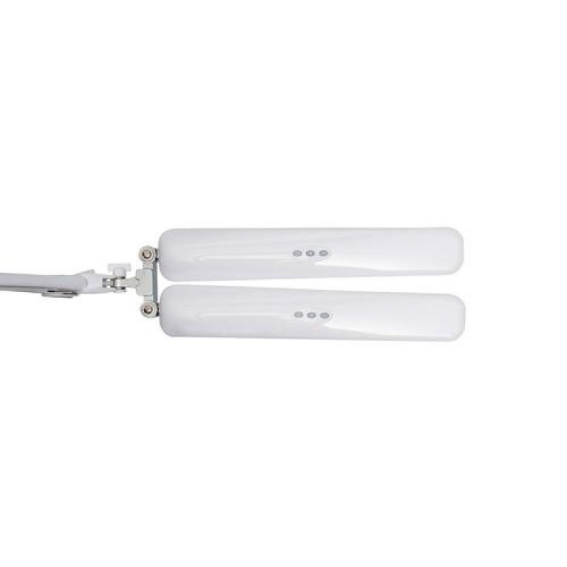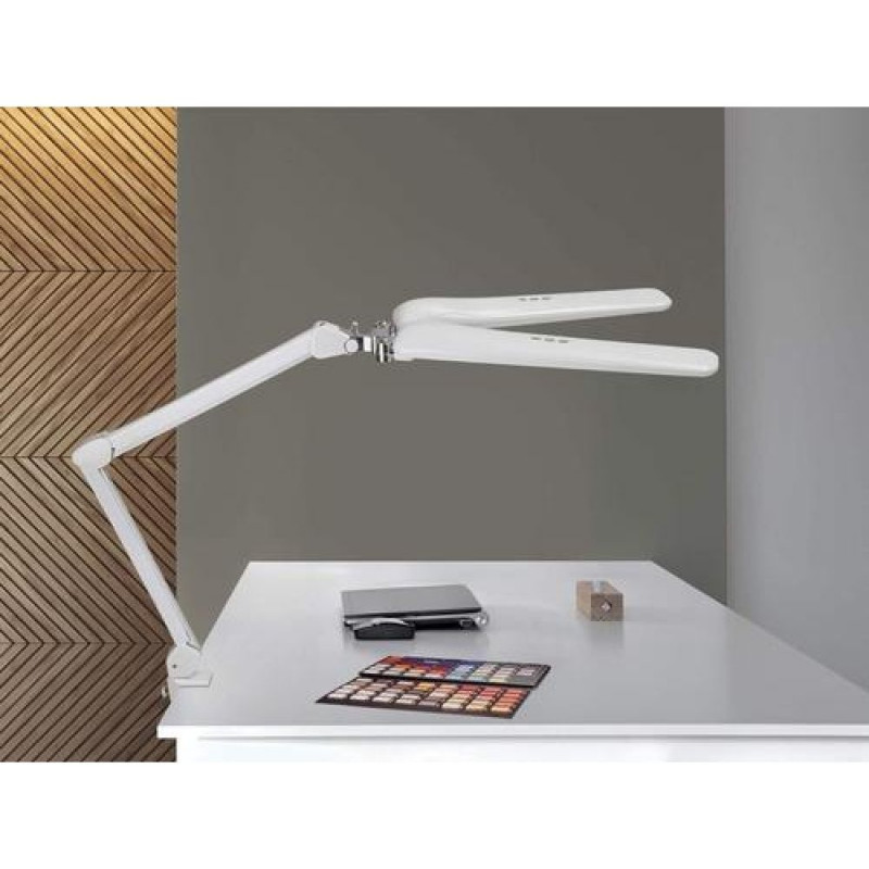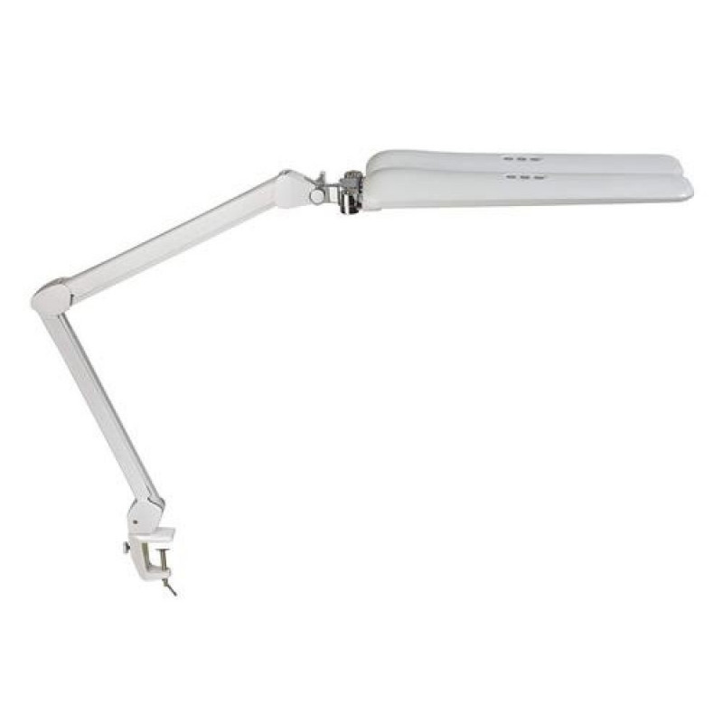 Powerful professional LED workstation lamp with two lamp heads<br>Heads adjustable at an angle of approx. 0° - 180° between each other<br>Large area illumination of the workplace up to 100 cm at an angle of 180°<br>High illuminationToode on arhiivis, kuvatakse vaid informatiivsel eesmärgil.