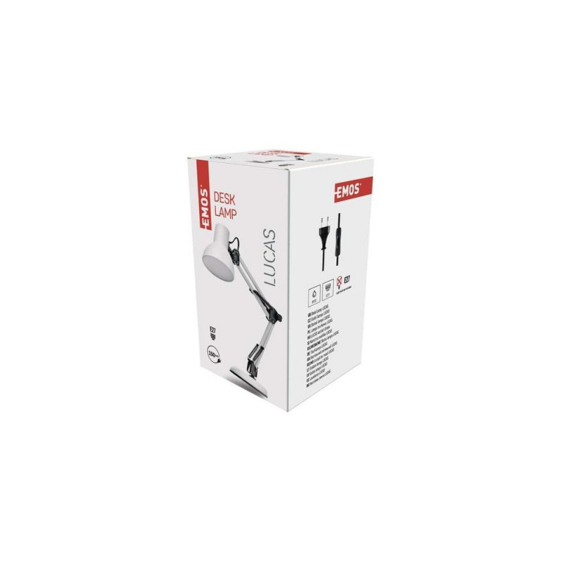<br />Emos Z7609W. Product colour: White, Material: Metal, International Protection (IP) code: IP20. Fitting/cap type: E27, Number of bulbs: 1 bulb(s). Cord length: 1.5 m. Suitable for light type: Orientation. Power source type: AC, Input voltage: 220 - 240 V, AC input voltage: 220 - 240 V