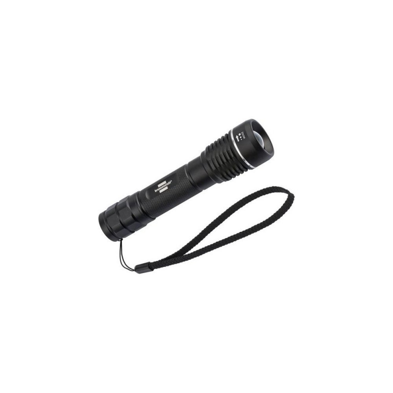 The LuxPremium LED flashlight with high-quality focus function and a high light output offers extremely bright light through its CREE LED, which can be easily adjusted by a switch with soft-touch function (100% - 40% - 10% - SOS). Thanks to the stepless focus, the rechargeable torch can be adjusted from a small spot light to high beam focused light.Brennenstuhl 1178600402. Flashlight type: Hand flashlight, Product colour: Black, Housing material: Metal. International Protection (IP) code: IP67. Lamp type: LED, Luminous flux: 600 lm, Colour temperature: 6500 K. Battery technology: Lithium-Ion (Li-Ion), Battery capacity: 2600 mAh, Battery voltage: 3.7 V. Width: 35 mm, Depth: 137 mm, Height: 35 mm