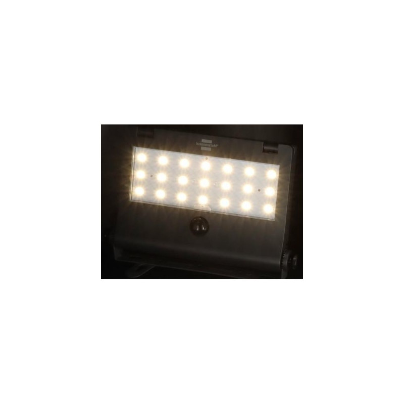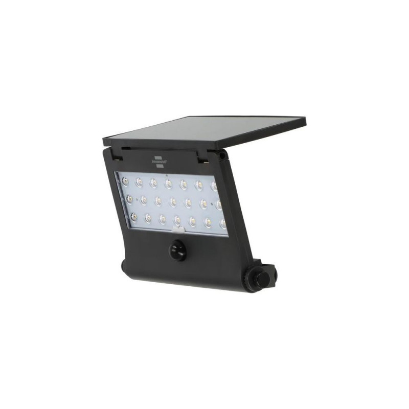 The Solar LED Wall Light SOL 1000 Pad with infrared motion detector is a Security Light with a solar module made of monocrystalline solar cells and integrated overcharge and deep discharge protection. The solar panel can be flexibly mounted on the top of the spotlight or externally aligned to the sunny side using a 3m cable. Thanks to the integrated feet, the Solar Light can also be used upright when camping, for example. The motion sensor has a detection angle of 120° and a maximum range of 5m. The solar outdoor wall light offers 4 different light modes: M1: on motion for 30sec with 1000lm - M2: on motion for 30sec with 1000lm, lights up for 30sec with 250lm and then goes out - M3: on motion for 60sec with 1000lm, lights up for 30sec with 250lm and then goes out - M4: continuous light for approx. 2h with 1000lm. It also impresses with the following features:Brennenstuhl 1173740003. Colour temperature (max): 4000 K, Luminous flux: 1000 lm. International Protection (IP) code: IP65, Protection class: III, Suitable for outdoor use, Product colour: Grey