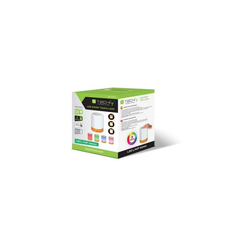 LED table lamp with professional optical structure and high quality LEDs, which ensure a stable light source and vibrant RGB colors with flicker-free and long-lasting illumination.<br>Dimmable light and possibility of selection of 5 colors. It has 3 levels of warm white brightness (bright, moderate and soft).<br>It's possible to adjust brightness and color simply by pressing the ring on the top of the touch lamp.<br>The LED table lamp is a portable table lamp, suitable for kids rooms, office, bedroom and camping and other outdoor activities.<br>Includes rechargeable lithium battery. Charging takes place via the USB connection (charger not included in the package).<br>Full charge allows up to 12 hours of use.<br>Thanks to the metal handle, it is portable and allows it to be hung, for greater versatility.Techly I-LED TOUCH. Product colour: White, Material: Acrylonitrile butadiene styrene (ABS), Suitable location: Bedroom. Number of bulbs: 16 bulb(s), Bulb power: 1.6 W, Bulb type: LED. Control type: Touch. Suitable for light type: Ambience. Power source type: Battery, Power consumption (max): 3 W, Input voltage: 5 V