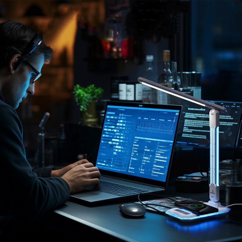 10 W juhtmevaba laadimine (muutub 5 W-ni, kui põhivalgus sisse lülitatakse) Dünaamiline valgusefekt: valgus saab muusika/hääle rütmis "tantsida" Erinevad RGB valgusrežiimid: värv, võidusõiduefekt, gradient, muusikarütm 1, muusikarütm 2 Kokkupandav lambivars: saab vastavalt vajadusele erinevate nurkade alla reguleerida 3 erinevat värvitemperatuuri Põhivalguse heleduse 5-astmeline reguleerimine USB-väljund 5 V / 2,1 A
