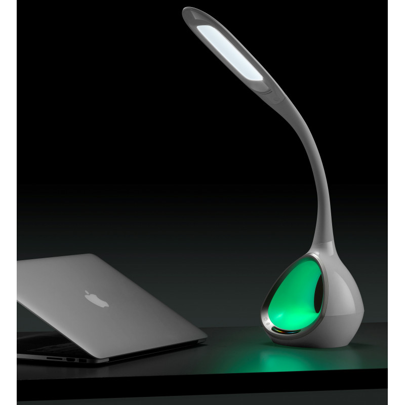 Modernse disainiga LED laualamp öökapile või töölauale. Lamp on tugeva kuni 450 lm valgusvooga ning külma 5500 K valge valgusega. 120° valgusvihk on kolmeastmeliselt seadistatav 17–450 lm ulatuses ning pakub seeläbi nii õrna lisavalgust kui korralikku valgust töölauale.