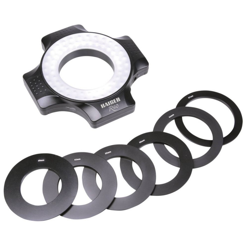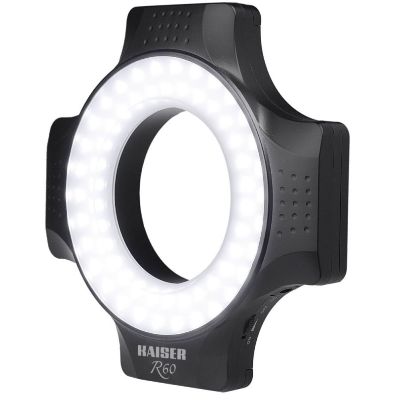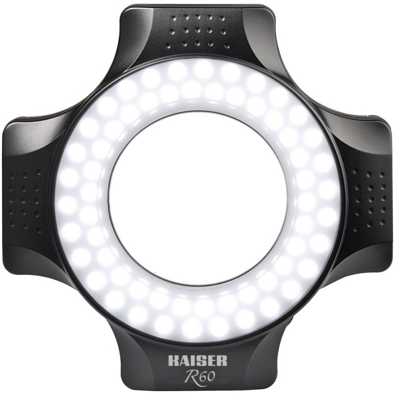 Võimas LED-rõngasvalgusti varjudevaba valgustuse jaoks lähivõtete jaoks. 60 päevavalgus-LED-i (värvitemperatuur umbes 5600K). Valgustus ligikaudu 2300 luksi 30 cm kaugusel 50° kiirnurgaga. Pidevalt reguleeritav.