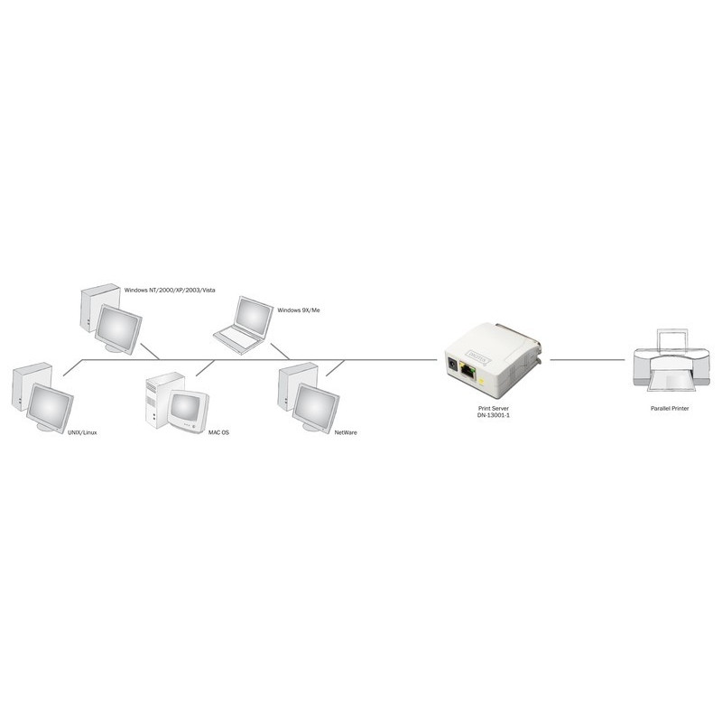 | Printing protocols | Obsługa protokołów druku: LPR, IPP i SMB/TCP Obsługuje drukowanie peer-to-peer (TCP/IP/IPX/NetBEUI/AppleTalk) Obsługuje drukowanie serwerowe (Novell NetWare i Windows) |