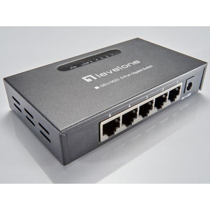 The LevelOne GEU-0523 is a wire-speed, non-blocking networking device that provides 5 ports 10/100/1000Mbps Ethernet connections. All ports support auto-negotiation and auto-MDI/MDIX sensing, eliminating the need for crossover cables or Uplink Ports. Each port can be used as general network port or as connecting port into a router, server, hub or another network switch. The GEU-0523 is the ideal and cost-effective choice for expanding your network.LevelOne GEU-0523. Switch type: Unmanaged. Basic switching RJ-45 Ethernet ports type: Gigabit Ethernet (10/100/1000), Basic switching RJ-45 Ethernet ports quantity: 5. MAC address table: 2000 entries, Switching capacity: 10 Gbit/s. Networking standards: IEEE 802.3az. DC input voltage: 5 V. Wall mountable