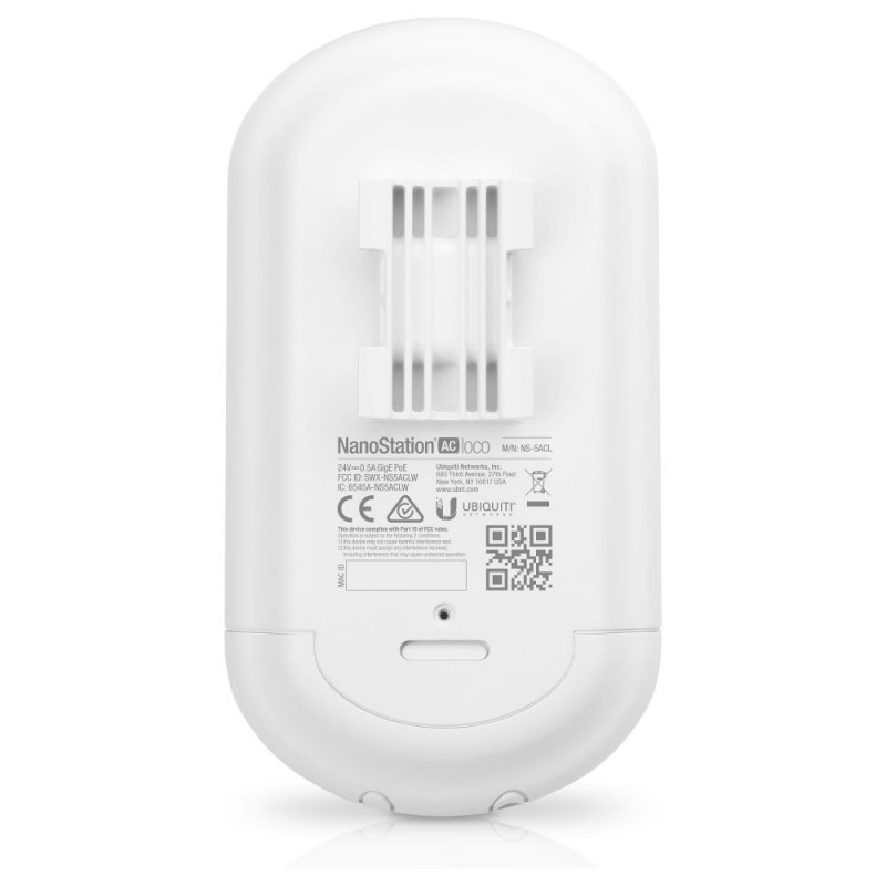 "Ubiquiti NanoStation 5AC Loco. 5 GHz, maksimaalne andmeedastuskiirus: 1000 Mbit/s, Etherneti LAN andmeedastuskiirused: 10, 100, 1000 Mbit/s. Toitevarustus üle Etherneti (PoE). Toote värvus: valge."