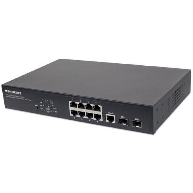 Intellinet 8-Port Gigabit Ethernet PoE+ Web-Managed Switch with 2 SFP Ports, IEEE 802.3at/af Power o