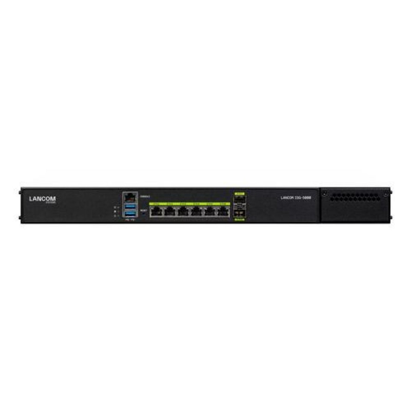 <b>Centralized performance for medium-sized SD-WAN scenarios</b><br>Large-scale multi-service IP networks have to offer the ultimate in performance and reliability at the central site. The LANCOM ISG-5000 is the secure and future-proof heart of your VPN networking strategy, thanks to its powerful platform with state-of-the-art encryption technologies, high scalability VPN, and redundancy features. Use SD-WAN to effortlessly connect your sites, branches, and remote workers. You can also upgrade this integrated services gateway with additional features such as a hotspot, clustering, or up to 1,000 VPN channels.<br><br><b>Secure site connectivity for medium-sized SD-WAN enterprise scenarios</b><br>The LANCOM ISG-5000 is the central instance for your high-performance SD-WAN in large enterprise infrastructures. 100 integrated VPN channels based on state-of-the-art encryption technologies and demand-oriented ports (6x Gigabit Ethernet, 2x SFP+, 2x USB, RJ45 config port) deliver the best possible conditions for networking mobile employees, protecting internal company data, and taking high-performance IPSec connectivity to sensitive network segments or branches. The LANCOM VPN option upgrades the gateway to support up to 1,000 VPN channels. This ensures that your network is perfectly scalable and can grow on demand—without needing additional hardware.<br><br><b>Powerful SD-WAN greatly simplifies the management of enterprise structures</b><br>In combination with the LANCOM Management Cloud, the LANCOM ISG-5000 provides the ideal basis for establishing a high-performance SD-WAN. For instance, it enables the highly automated configuration of a wide area network and an automatic rollout of device configurations to your individual locations. You benefit from highest levels of scalability, save on personnel costs, and keep track of the status of your network 24/7 – ideal for mid-sized enterprise scenarios with multiple locations.<br><br><b>Next-generation SD-WAN: High Scalability VPN (HSVPN)</b><br>The LANCOM ISG-5000 supports High Scalability VPN (HSVPN). The ongoing rise of digitalization, greater diversity of applications, and higher data volumes demand powerful, state-of-the-art networks. High Scalability VPN significantly improves the extensibility and efficiency of your architecture. Where previously each individual application required a separate VPN tunnel, HSVPN bundles any number of networks into a single VPN tunnel and transports them collectively to the remote site—with each network remaining secure and strictly separated from the others. The advantage for your business: Considerably fewer VPN tunnels are required, and recovery times are much faster in a failover event.<br><br><b>Further advantages</b><br><br>Maximum port flexibility<br>From fiber-optic to Ethernet and USB ports: As the core of the network, this integrated services gateway offers 6 Gigabit Ethernet ports as well as 2x USB. In addition, thanks to 2 SFP+ ports with 10 Gigabit, you can increase the capacity of your data transfers to servers, network storage or switches. <br><br>Systematic networking solutions<br>LANCOM integrated service gateways are the basis for secure encrypted site connectivity and high-speed Internet access. As professional system components, they are fully compatible to all LANCOM network devices and they facilitate flexible scaling and expansion when combined with further LANCOM components. The result is a secure and flexible all-round solution that you can rely on. The overall network, right down to each individual device, can be managed and monitored from one central instance—for a solution that is systematic. You can also upgrade this integrated services gateway with additional features such as a hotspot, clustering, or additional VPN channels.<br><br>Maximum future-proofing and digital sovereignty<br>As an established German manufacturer of IT network solutions, LANCOM stands for reliability and know-how. Software and hardware development as well as production take place primarily in Germany, as does the hosting of the network management. Special attention is given to providing trusted solutions with outstanding security features. Another important security characteristic of the products is that they are free from backdoors, as awarded by the German Federal Ministry of Economy with the quality seal “IT Security made in Germany”. All devices are always equipped with with hardware that is dimensioned for the future. Even across product generations, updates to the LANCOM operating system family are available several times a year, free of charge. his guarantees a long service life while staying technically up to date, which represents a true protection of your investment. In addition, LANCOM infrastructures are easily scalable thanks to maximum compatibility.LANCOM ISG-5000 (EU). Product colour: Black, Rack capacity: 19U, Enclosure material: Metal. VoIP protocols: RTP, SIPS, SRTP, Supported protocols: DNS, HTTP, HTTPS, ICMP, NTP/SNTP, NetBIOS, PPPoE (server), RADIUS, RADSEC (secure RADIUS), RTP,.... Ethernet LAN data rates: 10,100,1000 Mbit/s. Console port: RJ-45. Power consumption (max): 60 W, Input voltage: 100 - 240 V, Input frequency: 50/60 Hz
