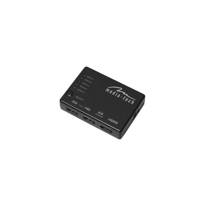 The product supports up to 4K resolution at 60Hz, utilizing the MT5207 chipset for high-quality video switching. It features five HDMI input ports that are compliant with the HDMI 1.4 standard.Osta kohe, viimased eksemplarid laos!