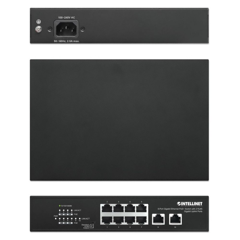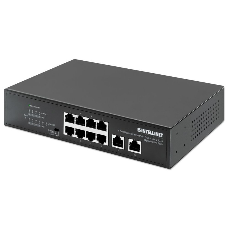 Intellinet 8-Port Gigabit Ethernet PoE+ Switch with 2 RJ45 Gigabit Uplink Ports, IEEE 802.3at/af Pow