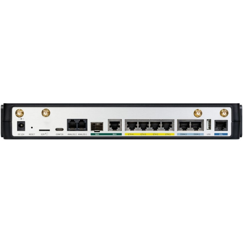LANCOM 1803VAW-5G (EU). Toote värvus: must, kinnitustüüp: laua-/seinakinnitus, ventilaatorite arv: 1 ventilaator. Antenni tüüp: väline. VoIP protokollid: RTP, SIPS, SRTP. Etherneti LAN andmeedastuskiirused: 10, 100, 1000 Mbit/s, võrgustandard: IEEE 802.11a, IEEE 802.11ac, IEEE 802.11ax, IEEE 802.11b, IEEE 802.11g, IEEE 802.11n, mobiilsidevõrgu põlvkond: 5G. Toetatud turbealgoritmid: AES-CCMP, AES-GCMP, EAP-TLS, EAP-TTLS, SNMP, SNMPv2, SNMPv3, TKIP.