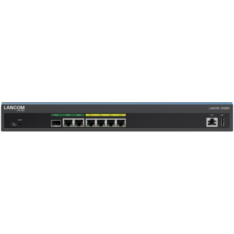 LANCOM 1930EF. Toote värvus: must, rack’i maht: 1U, korpuse materjal: metall. Antennitüüp: sisemine. Toetatud võrguprotokollid: DNS, HTTP, HTTPS, ICMP, NTP/SNTP, NetBIOS, PPPoE (server), RADIUS, RADSEC (turvaline RADIUS), RTP, ... , ruuteri protokoll: LISP, OSPFv2, toetatud protokollid: Ethernet üle GRE-tunneli (EoGRE), L2TPv3, ARP-päring, LLDP, DHCP valik 82, ... . Etherneti LAN andmeedastuskiirused: 10, 100, 1000 Mbit/s, võrgustandard: IEEE 802.1Q, kaabeldustehnoloogia: 10/100/1000Base-T(X). Toetatud turvaalgoritmid: 3DES, 128-bitine AES, 192-bitine AES, 256-bitine AES, 1024-bitine RSA, 4096-bitine RSA, SHA-256, SHA-384, SHA-512, autentimismeetodid: PAP, CHAP, MS-CHAP, MS-CHAPv2.