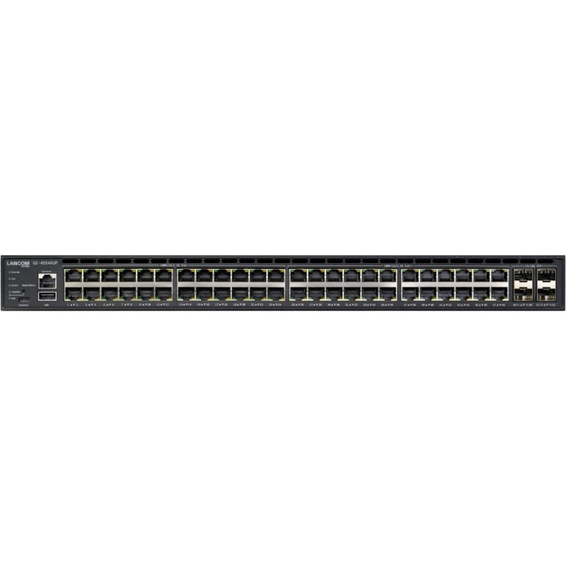 LANCOM GS-4554XUP. Lüliti tüüp: Hallatav, lüliti tase: L3. Põhiliste RJ-45 Ethernet portide tüüp: 2.5G Ethernet (100/1000/2500), põhiliste RJ-45 Ethernet portide arv: 54, USB 2.0 portide arv: 1, konsoolipordi tüüp: RJ-45/Micro-USB. MAC-aadresside tabel: 32 000 kirjet. Võrgustandardid: IEEE 802.1D, IEEE 802.1Q, IEEE 802.1Qav, IEEE 802.1Qbb, IEEE 802.1ab, IEEE 802.1ad, IEEE 802.1ak, .... Power over Ethernet (PoE). Riiulimontaaž, vormitegur: 1U