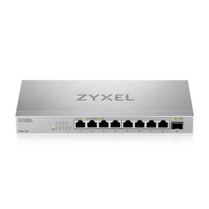 The Zyxel XMG-100 Series 2.5 Gigabit switch is the ideal choice for home, SOHO, or small office users who want to upscale their network with increasing demands coming from online gaming activities, multimedia streaming services or faster wireless network connectivity. All ports are equipped with 2.5 Gigabit Ethernet speed, allowing easy network speed upgrade. In addition, this Series offers an extra SFP+ slot for 10G network uplink or access to a NAS.<br><br><b>Plug-and-play to upgrade your network to WiFi 6/6E. </b><br>The XMG-100 Series Switch features Multi-Gig ports supporting speeds up to 2.5G, allowing effortless connection to the latest 2.5G-compatible network devices for high-performance networking. Its simplified plug-and-play technology ensures easy setup to seamlessly upgrade your wireless network to WiFi 6/6E by connecting to the PoE models XMG-105HP and XMG-108HP. <br><br><b>Extra 10G port to streamline large file transfers. </b><br>The 10-Gigabit SFP+ increase the network speed for quicker uploads and downloads through NAS and server, allowing content creators or self-media individuals to work more efficiently. Large files, such as high-resolution videos or images, can be transferred in significantly less time, saving valuable production hours.<br><br><b>2.5G Super-Fast Speeds Without Re-cabling.</b><br>You can use your current Cat 5e cables to upgrade your home networking speed from current 1Gbps to 2.5Gbps without additional cabling fee!<br><br><b>Silent Operation, and Flexible Deployment. </b><br>The XMG-100 Series is built with fanless and sturdy hardware design to ensure all-time silent and stable operation. They are perfect for noise-free environments such as home or studio. The compact design offers flexible mounting options to place the switch on a desktop or mount it to a wall.<br><br><b>Accelerate Your Networking Experience. </b><br>The XMG-100 Series offers home or SOHO users a lag-free and non-intermittent network experience for online gaming or multimedia streaming services. This is achieved through a fast and secure local network connection.Zyxel XMG-108. Switch type: Unmanaged. Basic switching RJ-45 Ethernet ports type: 2.5G Ethernet (100/1000/2500), Basic switching RJ-45 Ethernet ports quantity: 8. MAC address table: 4000 entries, Switching capacity: 60 Gbit/s. Networking standards: IEEE 802.1p, IEEE 802.3ab, IEEE 802.3ae, IEEE 802.3az, IEEE 802.3bz, IEEE 802.3u, IEEE 802.3x,.... Wall mountable