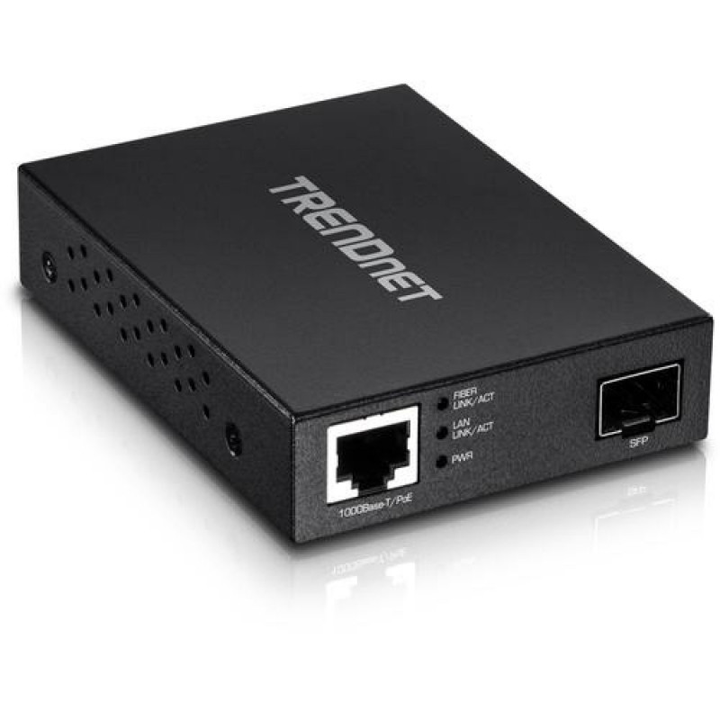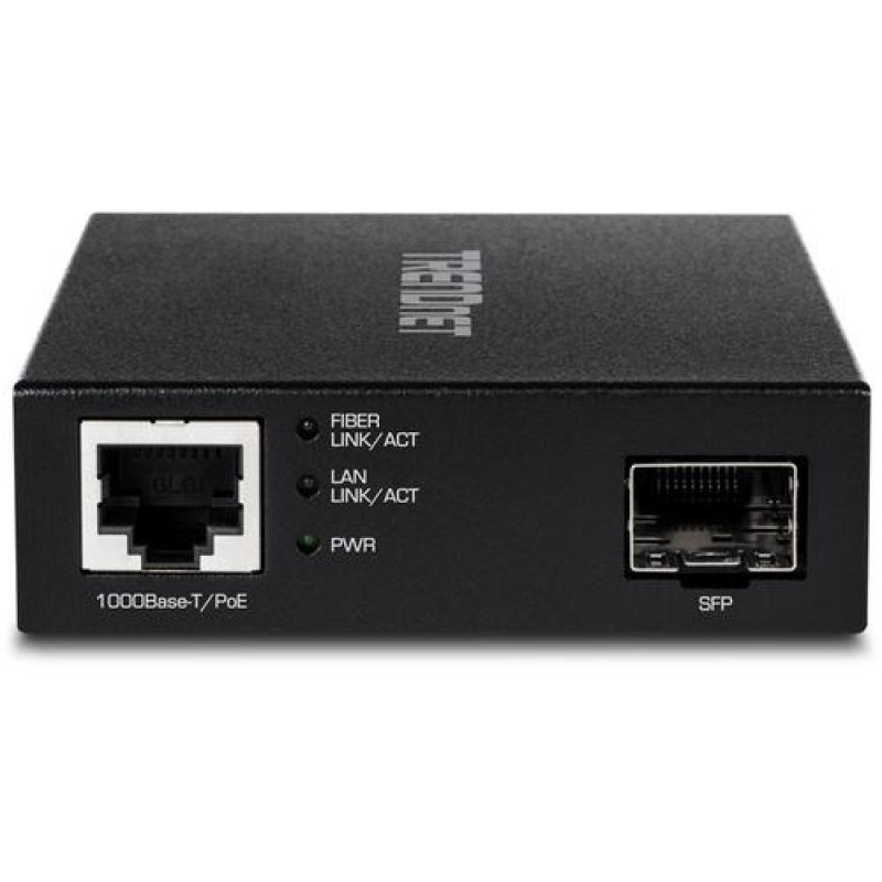 TRENDnet's Gigabit PoE PD SFP Fiber Media Converter, model TFC-PGSFP, converts 100/1000BASE-T copper Ethernet to 1000BASE-SX/LX Fiber SFP media and vice versa. The TFC-PGSFP is conveniently powered via PoE switch or injector, no power adapter is requOsta kohe, viimased eksemplarid laos!