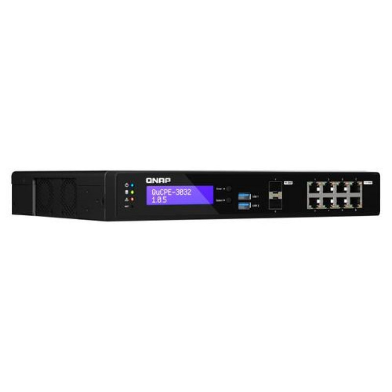 <b>Network Virtualization Premise Equipment with an Intel® Atom Refresh quad-core processor, suitable for deploying virtual networks in multiple edge offices</b><br>QNAP’s QuCPE-3032 Network Virtualization Premise Equipment is a universal virtualization platform specifically designed for SMBs. The QuCPE-3032 adopts the high-performance Intel® Atom Refresh quad-core processor that supports Intel® QAT, Smart NIC SR-IOV and DPDK hardware acceleration technologies while also providing eight 2.5GbE RJ45 ports and two 10GbE SFP+ ports. With enhanced bandwidth and computing performance for running VNFs and connecting SD-WAN (Supporting VPN/WireGuard), the QuCPE-3032 is suitable for multi-user and multi-tasking business applications. The QuCPE-3032 also features the QNE (QNAP Network Equipment) OS for chaining VNF services and AMIZ Cloud centralized deployment and management platform to realize flexible Zero Touch Provisioning.<br><br><b>Build a multi-site network infrastructure for SMBs and Micro-enterprises</b><br>QNAP’s high-performance QuCPE integrates the QuWAN SD-WAN solution, AMIZ Cloud platform, and WireGuard VPN. Small businesses and micro-enterprises can flexibly build multi-site network infrastructure by deploying a QuCPE Series 7 in their headquarters, and QuCPE Series 3 in their branches and workplaces.<br><br><b>Easily deploy virtual network environments with the 2-in-1 Premise Equipment</b><br>When deploying virtualized environments, Enterprises often choose to install costly enterprise-grade solutions on edge servers or free solutions with limited technical support – a hard decision for resource-constricted SMBs. In addition, simultaneously running multiple VMs can impact network performance. QNAP’s QuCPE Network Virtualization Premise Equipment combines hardware acceleration technologies, QNAP’s proprietary QNE Network operating system and the AMIZ Cloud centralized management platform to help SMBs build a highly-optimized virtual network infrastructure.<br><br><b>The QNE Network Operating System completes your virtual network infrastructure</b><br>QNAP’s proprietary QNE Network operating system supports the intuitive Network Service Composer and Software-Defined WAN (SD-WAN), allowing for flexible network deployment and multi-site network infrastructure expansion. By supporting Virtual Network Functions (VNF), Virtual Machines and Containers, QNE Network integrates network, computing, and application services to realize network virtualization, application virtualization and efficient management, greatly lowering management and maintenance complexity.<br><br><b>AMIZ Cloud - powerful centralized VM management platform</b><br>The AMIZ Cloud centralized management platform enables HQ-based IT staff to centrally monitor all edge devices, virtual machines, and containers. Supporting troubleshooting, and remote management via the Account Center, the QuCPE-3032 helps enterprises achieve Zero Touch Provisioning, thus enhancing IT deployment efficiency and reducing maintenance costs.<br><br><b>Efficient management via Service Composer with visualized topology</b><br>With the visualized topology of the Network Service Composer, you can easily set up VNFs or VMs, create virtual switches, and allocate physical network resources for chained services by drag and drop. When settings change, you can directly add/remove individual VNFs using the service composer, greatly simplifying operational network combination.<br><br><b>SD-WAN enables chaining network services</b><br>QNE incorporates QNAP’s QuWAN SD-WAN solution (subscription-free) to form encrypted VPN tunnels with other QNAP devices based in multiple sites and achieve multi-site network services chaining. For example, you can automatically create a firewall network (using QuWAN and pfSense VNFs) to enhance WAN security in the Service Composer UI using drag-and-drop.<br><br><b>Optimize LAN/WAN performance</b><br>Service Composer also supports SR-IOV and QuWAN SD-WAN, which greatly improves the WAN transmission of the QuCPE-3032 that runs QuWAN, while also helping users to enjoy high-speed and secure LAN and WAN network transmission at the same time.<br><br><b>Enhanced security</b><br>You can automatically create a firewall network (using QuWAN and pfSense VNFs) to enhance WAN security in the Service Composer UI using drag-and-drop.<br><br><b>Run your VM/VNF Directly on QuCPE</b><br>QNE Network inherits versatile virtual applications from the QNAP QTS system. QuCPE can simultaneously run multiple virtual machines, software containers, and even bespoke user-made virtual machines in Virtualization Station and Container Station, assisting SMBs in improving deployment and management flexibility while streamlining hardware costs.<br><br><b>Intel hardware acceleration technologies boost virtual network performance</b><br>Specifically designed for running virtualization applications, the QuCPE-3032 Network Virtualization Premise Equipment adopts multiple Intel hardware acceleration technologies to allow direct hardware access, thus enhancing VM and virtual network transmission performance.<br><br><b>DPDK (Data Plane Development Kit)</b><br>Allows data to bypass the OS Kernel and directly enter user space to offer a double packet transmission rate (Total T/R x L2) and improve overall virtualization application performance.<br><br><b>Smart NIC SR-IOV (Single Root I/O Virtualization)</b><br>By installing an SR-IOV compatible PCIe SmartNIC, you can allocate bandwidth resources from a physical network card directly to VMs. With traffic bypassing the Hypervisor vSwitch, it helps enhance I/O throughout and network efficiency, ensuring reliable VM applications and reduced CPU overheads.<br><br><b>Intel QAT (Intel QuickAssist Technology)</b><br>Offloads computationally-intensive compression and improves IPsec cryptography VPN performance.<br><br><b>Smart IT tools for network management efficiency</b><br>QNE Network provides comprehensive m