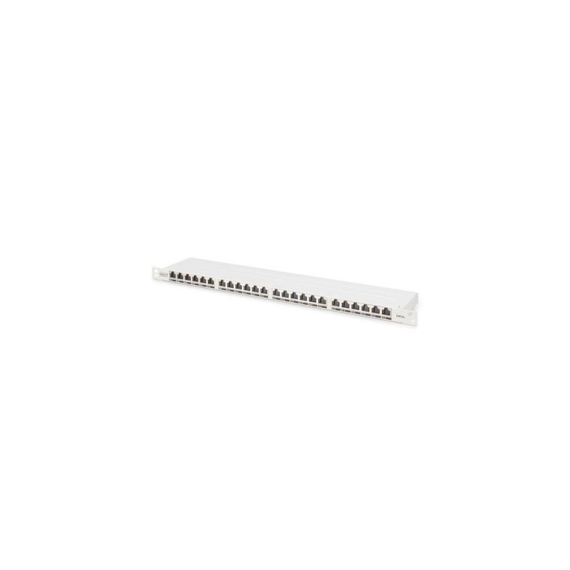 Very space-saving (only 0.5U) - With dust protection caps - Future-oriented standards and high-end quality for your network<br><br>- Slim installation height of only 0.5 U<br>- Up to 48 ports per U possible (2 x 24 port panels)<br>- Dust protection flaps on the RJ45 sockets<br>- 360° shield contacting<br>- Cable clamp for fixing and routing, reclosable<br>- Quick-release fastener to secure the housing cover<br><br>The DIGITUS® 24-port patch panel offers a very high packing density with only 0.5 U. This means that up to 48 ports can be implemented on 1 U with two 0.5 U panels. The patch panel is shielded and equipped with dust protection caps on the RJ45 sockets. The 360° shield contact of the cables ensures the best performance characteristics. The quick-release fastener on the housing ensures easy and tool-free access to the LSA cutting terminals.Digitus CAT 6A, Class EA High Density Patch Panel, shielded. Connector contacts plating: Gold, Cable types supported: Cat6a, Plug/connector retention force: 30 N. Product colour: Grey, Material: Steel, Mounting: Rack mounting. Package width: 515 mm, Package depth: 130 mm, Package weight: 980 g. Country of origin: China