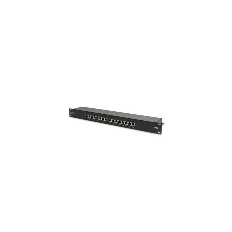 Future-oriented standards and high-end quality for your network.<br><br>The shielded CAT 6 Patch Panel from DIGITUS® is available as 16- or 24-port version. It is manufactured acc. to Link Performance Class E, for up to 250 MHz, EN 50173 and ISO/IEC 11801 and complies with the 802.3at PoE+and the 802.3af PoE standard. The housing is made of 1.5 mm galvanized cold-rolled steel and is therefore perfectly suitable for 19" rack mounting.Digitus CAT 6, Class E Patch Panel. Networking standards: IEEE 802.3af, IEEE 802.3at, Connector(s): RJ-45, Connector contacts plating: Gold. Product colour: Black, Material: Galvanized steel, Mounting: Rack mounting. Package width: 500 mm, Package depth: 135 mm, Package weight: 1.06 kg. Country of origin: China