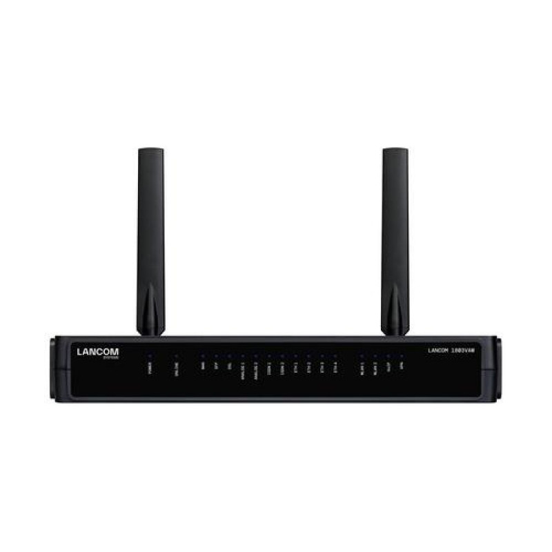 <b>SD-WAN VoIP gateway with VDSL and Wi-Fi 6</b><br><br>Thanks to dual-band concurrent Wi-Fi 6 technology, the SD-WAN gateway LANCOM 1803VAW integrates mobile devices into the corporate network in parallel in the 5 GHz and 2.4 GHz bands. The integrated VDSL modem and the optional fiber-optic connection provide the necessary high-performance basis for fast Internet even with high data volumes. Secure LANCOM IPSec VPN and SD-WAN connect company sites and mobile employees, making the LANCOM 1803VAW a high-performance node for small and medium-sized businesses and branch office infrastructures. In combination with the LANCOM Management Cloud (LMC), you automate and centralize your network management to save valuable resources such as time and money.<br><br><br><b>Modern housing with focus on sustainability</b><br><br>Innovative technology meets forward-looking optics: the combination of matte black plastic and mirror-like acrylic glass front panel for interface information conveys a tangible feeling of security, reliability, and high quality. The housing of the SD-WAN branch router offers high installation flexibility thanks to possible table, rack, and wall mounting. Local production ensures short procurement routes with low CO2 emissions and thus scores particularly well in terms of sustainability.<br><br><b><br>Security with ARF, VLAN, and inspection firewall</b><br><br>Equipped with a stateful inspection firewall, the LANCOM SD-WAN gateway protects the entire network with functions such as intrusion prevention and denial of service protection. Logical network segmentation allows you to define individual security settings and access rights according to the requirements of the user groups, and to divide your infrastructures and applications into different areas. This network segmentation using ARF (Advanced Routing and Forwarding) and VLAN (Virtual Local Area Network) ensures that your enterprise network as a whole remains protected, even if a network segment is compromised.<br><br><br><b>Secure communication via VPN</b><br><br>With virtual private networks (VPN), you use the public medium of the Internet as a communication path and secure the connection in such a way that the communication still remains completely inaccessible to external parties. This SD-WAN gateway offers you five integrated IPSec VPN channels for secure encryption, so that the protection of internal company data is always guaranteed when connecting mobile employees, home offices, or branch offices. With the LANCOM VPN Option, you can also upgrade the device to up to 25 VPN channels, so that the infrastructure can easily grow with your needs without additional hardware.<br><br><br><b>Professional, comprehensive telephony functions</b><br><br>Equipped with the LANCOM VCM (Voice Call Manager), the LANCOM SD-WAN VoIP gateway takes over classic telephony management tasks and integrates any type of telephony component such as SIP, ISDN, or analog. In addition, the LANCOM VCM provides common functions of a Session Border Controller (SBC): This ensures the secure separation of external (unsecure) and internal (secure) networks. For high call quality, voice packets are given preference thanks to bandwidth reservation (Quality of Service). In addition, as a SIP proxy, the VCM enables professional management of signaling and voice data for high security in the setup, implementation and teardown of telephone conversations, including any protocol conversion by means of transcoding. The VoIP gateway conveniently handles the translation between ISDN, analog, and VoIP.<br><br><br><b>Maximum future-proofing and digital sovereignty</b><br><br>As an established German manufacturer of IT network solutions, LANCOM stands for reliability and know-how. Software and hardware development as well as production take place primarily in Germany, as does the hosting of the network management. Special attention is given to providing trusted solutions with outstanding security features. Another important security characteristic of the products is that they are free from backdoors, as awarded by the German Federal Ministry of Economy with the quality seal “IT Security made in Germany”. All devices are always equipped with with hardware that is dimensioned for the future. Even across product generations, updates to the LANCOM operating system family are available several times a year, free of charge. his guarantees a long service life while staying technically up to date, which represents a true protection of your investment. In addition, LANCOM infrastructures are easily scalable thanks to maximum compatibility.LANCOM 1803VAW (EU). Product colour: Black, Number of fans: 1 fan(s). Antenna type: External, Antenna connector type: SMA, Antenna gain level (max): 2 dBi. Management protocols: SNMPv1,v2c,v3, Supported network protocols: Ethernet over GRE-Tunnel (EoGRE), L2TPv3, ARP-Lookup, LLDP, DHCP option 82,..., VoIP protocols: SIP ALG. Ethernet LAN data rates: 10,100,1000 Mbit/s, Networking standards: IEEE 802.1Q, IEEE 802.3az, Frequency band: 2.4/5 GHz. Security algorithms: 3DES, AES, FIPS 140, SHA-1, SHA-256, SHA-384, SHA-512, Authentication method: PAP, CHAP, MS-CHAP, MS-CHAPv2