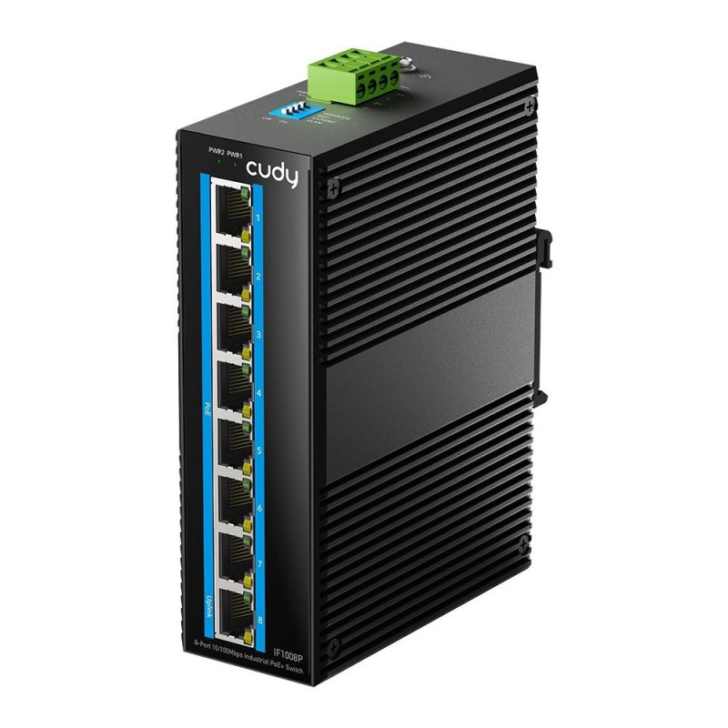 Cudy 8-porti 10/100M tööstuslik PoE lüliti haldamata gigabit ethernet (10/100/1000) power over ether
