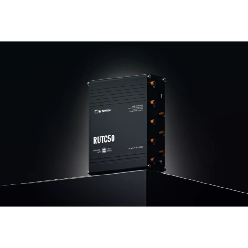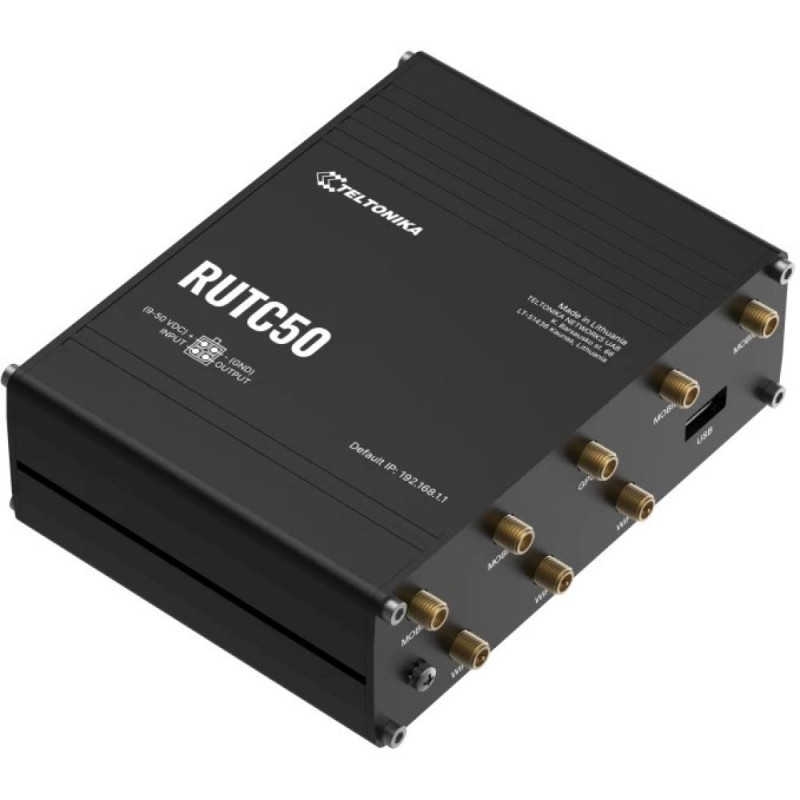 Teltonika RUTC50. WLAN-sagedusala: Kahe sagedusalaga (2,4 GHz/5 GHz), Peamine WLAN-standard: Wi-Fi 6 (802.11ax), Maksimaalne WLAN-andmeedastuskiirus: 2402 Mbit/s. Ethernet-LAN liidese tüüp: Gigabit Ethernet, Ethernet LAN andmeedastuskiirused: 10, 100, 1000 Mbit/s, Kaabeldustehnoloogia: 10/100/1000Base-T(X). Mobiilsidevõrgu põlvkond: 5G, 4G-standardid: LTE, 5G-standard: Sub6 SA/NSA. Autentimismeetodid: Eelnevalt jagatud võti (Pre-shared key), digitaalsed sertifikaadid, X.509 sertifikaadid, TACACS+, Radius, IP- ja sisselogimiskatsete kontroll... Tulemüür: Pordi suunamine, liiklusereeglid, kohandatud reeglid. Ruuteri protokollid: BGP, EIGRP, NHRP, OSPFv2, RIP-1, RIP-2. VoIP protokollid: H.323 ja SIP-alg protokolli NAT-abid, mis võimaldavad VoIP-pakettide korrektset suunamist. Toetatud võrguprotokollid: TCP, UDP, IPv4, IPv6, ICMP, NTP, DNS, HTTP, HTTPS, FTP, SMTP, SSL v3, TLS, ARP, VRRP, PPP, PPPoE, ...
