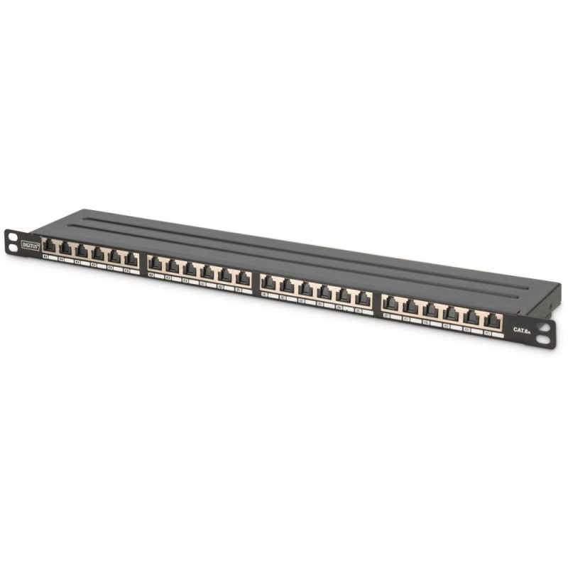 Digitus CAT 6A, klass EA kõrge tihedusega patch-paneel, varjestatud. Võrgustandard: IEEE 802.3af, IEEE 802.3at, pistik: RJ-45, toetatud kaablitüübid: Cat6a. Toote värvus: must, materjal: SECC, paigaldus: rack-kinnitusega. Sertifikaadid: EN1.4301, UNS S30400, AISI 304, LMSAD110. Pakendi laius: 140 mm, pakendi sügavus: 530 mm, pakendi kaal: 1,5 kg. Päritoluriik: Hiina.