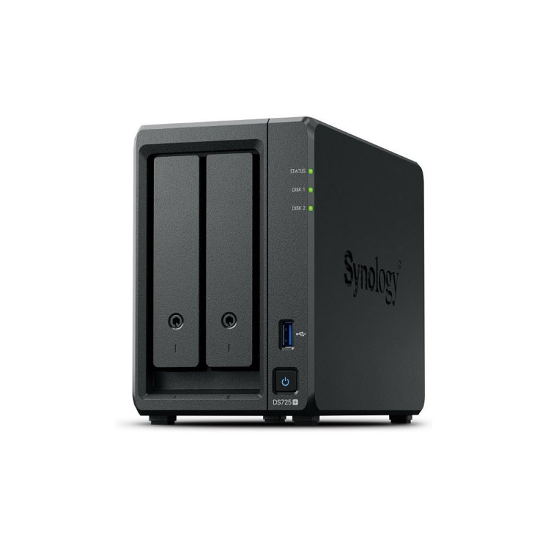 Synology DiskStation DS725+. Tüüp: NAS, Seadmeklass: Kodu ja kodukontor. Protsessori perekond: Ryzen Embedded, Protsessor: R1600, Protsessori taktsagedus: 2,6 GHz. Mälumaht: 4 GB, Sisemälu tüüp: DDR4. Installitud salvestusmaht kokku: 0 TB