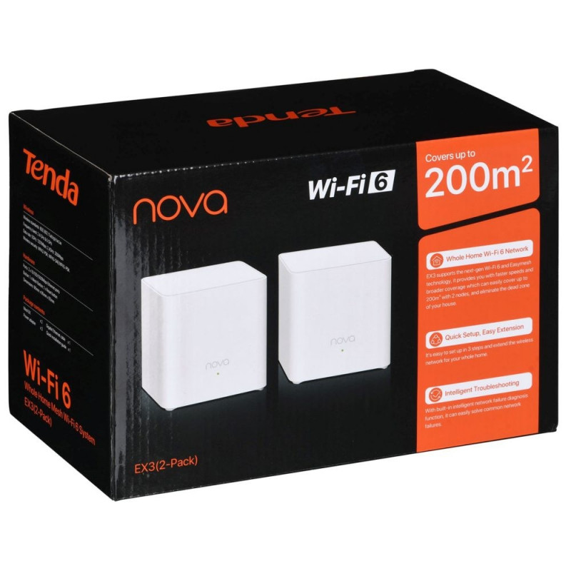 Tenda EX3 (2 tk) Kahe sagedusalaga (2,4 GHz / 5 GHz) Wi-Fi 6 (802.11ax) Valge