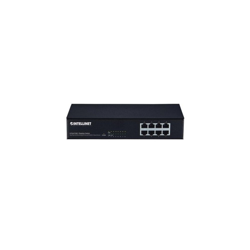 Save installation time and money with PoE. _x000D_<br> _x000D_<br>The Intellinet Network Solutions 8-Port Fast Ethernet PoE+ Switch (560764) is designed to pass both data and electrical power to a number of PoE-compatible devices via standard Cat5e or Cat6 network cables. Equipped with eight Fast Ethernet ports (all of which support 802.3at/af PoE/PoE+), this switch can power wireless LAN access points and bridges, VoIP phones, IP video cameras and more while delivering network speeds of up to 100 Mbps. _x000D_<br> _x000D_<br>Power over Ethernet 802.3at _x000D_<br>The Intellinet Network Solutions 8-Port Fast Ethernet PoE+ Switch supports the IEEE 802.3at protocol and is designed to inject up to 30 watts of power per port*. IEEE802.3af- or IEEE802.3at-compliant devices attached to the switch require no additional power, thus eliminating the time and expense of electrical rewiring and minimising the unsightly clutter caused by power supplies and adapters in awkward places such as ceilings and walls. Any mix of PoE and non-PoE devices is supported, and thanks to its short circuit, overload and high-voltage protection function, your equipment is well protected. For devices that are not 802.3at/af compliant (legacy wireless access points or network cameras), we suggest use of an Intellinet Network Solutions PoE/PoE+ Splitter. _x000D_<br> _x000D_<br> _x000D_<br>* Total PoE budget for this switch is 140 watts. Per-port average power distribution is 17.5 watts; maximum per-port power usage cannot exceed 30 watts.Intellinet 8-Port Fast Ethernet PoE+ Switch, 8 x PoE ports, IEEE 802.3at/af Power-over-Ethernet (PoE+/PoE), Endspan, Desktop, Box. Basic switching RJ-45 Ethernet ports type: Fast Ethernet (10/100), Basic switching RJ-45 Ethernet ports quantity: 8. Full duplex. MAC address table: 2048 entries, Switching capacity: 1.6 Gbit/s. Networking standards: IEEE 802.1af, IEEE 802.3, IEEE 802.3at, IEEE 802.3u, IEEE 802.3x. Power connector: DC-in jack. Power over Ethernet (PoE)