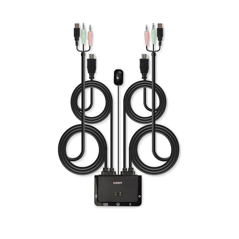 KVM Switch - LINDY 2 Port HDMI 4K30, USB 2.0 Audio KVM Switch, Black