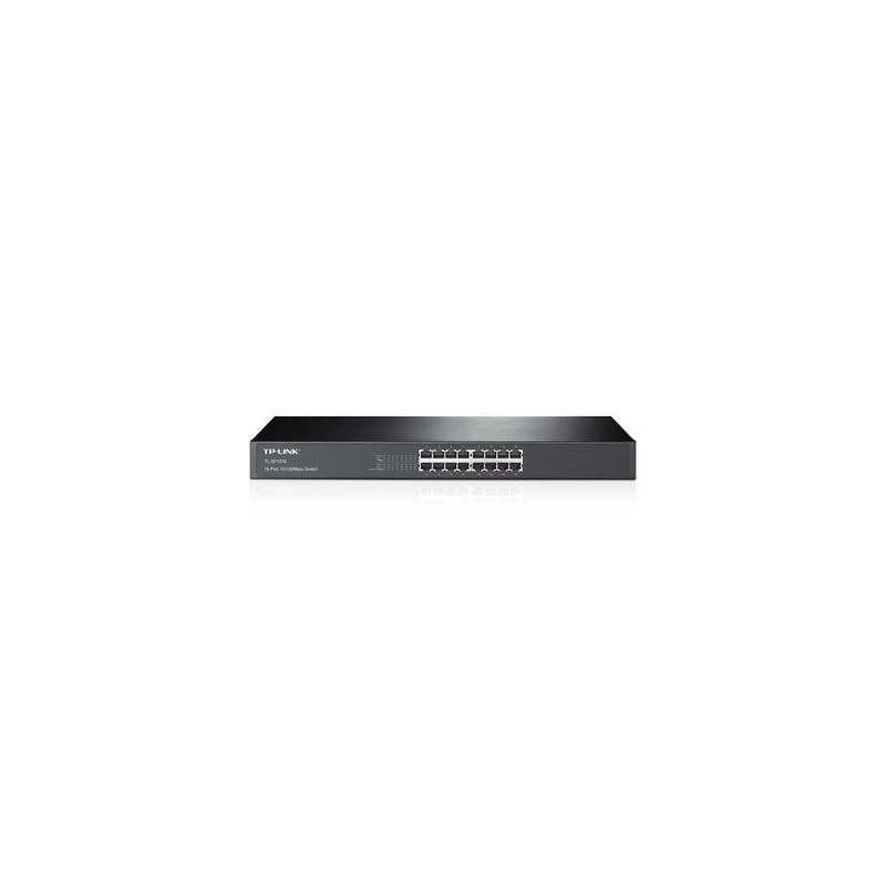 <b>What This Product Does</b><br>The 16-Port 10/100Mbps Rackmount Switch TL-SF1016 provides you with a high-performance, low-cost, easy-to-use, seamless and standard upgrade to improve old network to 100Mbps network. All 16 ports support auto MDI/MDIX, no need to worry about the cable type, simply plug and play. Moreover, with the innovative energy-efficient technology, the TL-SF1016 can save up to 70%* of the power consumption and 80% of the packaging material can be recycled, making it an eco-friendly solution for your business network.<br><br><b>TP-LINK Green Technology</b><br>This new generation The 16-Port 10/100Mbps Switch TL-SF1016 features the latest innovative energy-efficient technologies that can greatly expand your network capacity with much less power. It automatically adjusts power consumption according to the link status and cable length to limit the carbon footprint of your network. It also complies with the EU'S RoHS, prohibiting the use of certain hazardous materials. Besides, 80% of the packaging material can be recycled.<br><br><b>High Performance</b><br>The rack-mount size steel case design, combined with a safety-certified internal power supply, make the switch the most robust product, which is very cost-effective for a less than 16-user environment. Featuring non-blocking switching architecture, TL-SF1016 forwards and filters packets at full wire-speed for maximum throughput. And IEEE 802.3x flow control for Full Duplex mode and backpressure for Half Duplex mode alleviate the traffic congestion and make TL-SF1016 work reliably.<br><br><b>Easy to Use</b><br>The auto features of this fast ethernet switch make installation plug and play and hassle-free. No configuring is required. Auto MDI/MDIX eliminates the need for crossover cables. Auto-negotiation on each port senses the link speed of a network device (10, 100 Mbps) and intelligently adjusts for compatibility and optimal performance.<br><br>- Innovative energy-efficient technology saves power up to 70%<br>- Supports IEEE 802.3x flow control for Full Duplex mode and backpressure for Half Duplex mode<br>- Non-blocking switching architecture that forwards and filters packets at full wire-speed for maximum throughput<br>- 3.2 Gbps Switching Capacity<br>- Store and forward Switching scheme<br>- Auto-MDI/MDIX eliminates the need for crossover cables<br>- Supports MAC address auto-learning and auto-aging<br>- Auto-negotiation ports provide smart integration between 10Mbps, 100Mbps hardware.<br>- Plug and Play design simplifies installation<br>- Fanless design to make sure it works quietlyTP-Link 16-Port 10/100Mbps Rackmount Network Switch. Switch type: Unmanaged. Basic switching RJ-45 Ethernet ports type: Fast Ethernet (10/100), Basic switching RJ-45 Ethernet ports quantity: 16. MAC address table: 8000 entries, Switching capacity: 3.2 Gbit/s. Networking standards: IEEE 802.3i, IEEE 802.3u, IEEE 802.3x. Power connector: DC-in jack. Rack mounting, Form factor: 1U