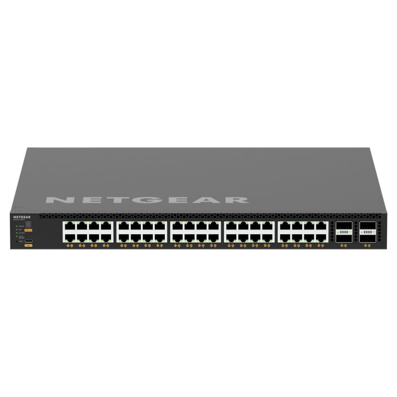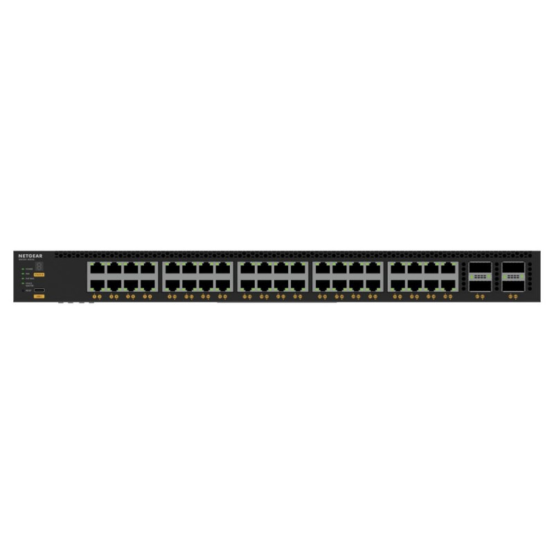 NETGEAR M4350-40X4C. Lüliti tüüp: Hallatav, lüliti tase: L3. Põhiliste RJ-45 Ethernet-portide tüüp: 10G Ethernet (100/1000/10000), põhiliste RJ-45 Ethernet-portide arv: 40. Täisdubleks. MAC-aadresside tabel: 16 000 kirjet, ruuteri/lüliti läbilaskevõime: 1600 Gbit/s. Võrgustandardid: IEEE 802.1D, IEEE 802.1Q, IEEE 802.1Qav, IEEE 802.1s, IEEE 802.1w, IEEE 802.1x, IEEE 802.3, IEEE.... Toitepistik: vahelduvvoolu sisendpesa. Power over Ethernet (PoE). Riiulipaigaldus, vormitegur: 1U
