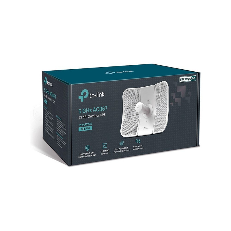 TP-Link CPE710 on professionaalseks kasutamiseks mõeldud välitingimuste traadita lahendus, mis on loodud pakkuma stabiilset ja kiiret internetiühendust pikkade vahemaade taha. See seade on ideaalne valik punkt-punktist (Point-to-Point) või punkt-mitmepunktist (Point-to-Multipoint) võrguühenduste loomiseks, kus on vajalik suur läbilaskevõime ja vastupidavus keskkonnamõjudele. Tänu 802.11ac Wi-Fi standardile suudab CPE710 pakkuda andmeedastuskiirust kuni 867 Mbps 5 GHz sagedusalas, mis on oluliselt kiirem kui vanema põlvkonna 802.11n seadmed. See teeb sellest suurepärase seadme mahukate andmete edastamiseks, videovalve voogedastuseks või kaugete asukohtade võrku ühendamiseks.