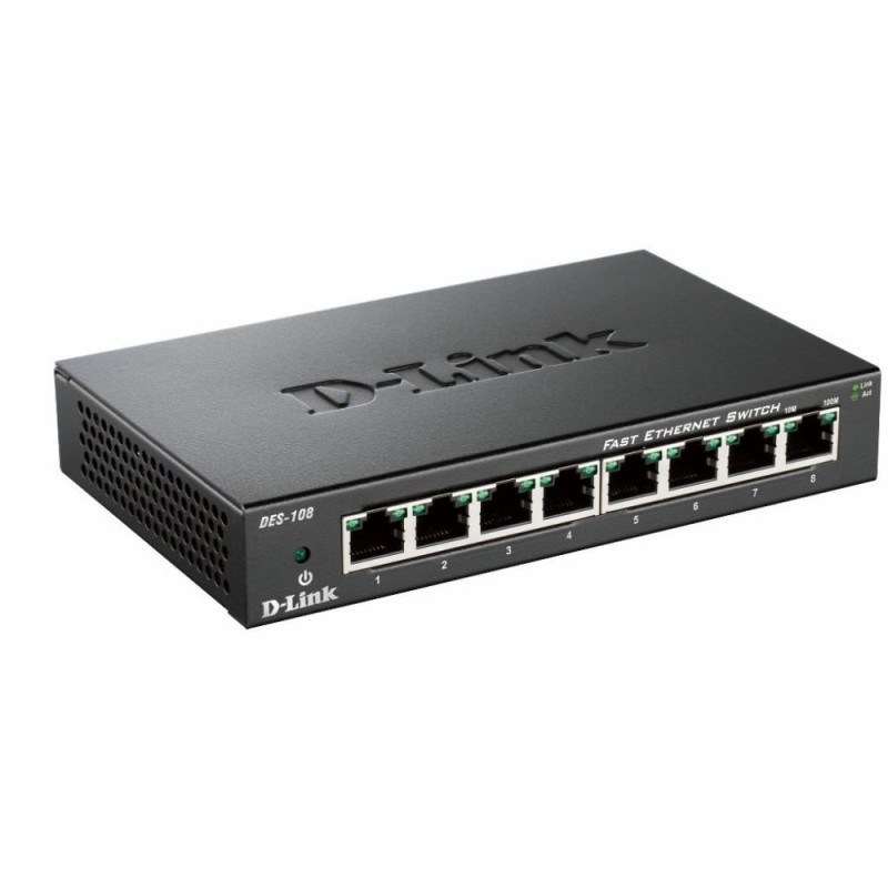 Featuring easy access auto sensing 10/100 front Ethernet ports with two color LED indicators per port to quickly distinguish link, speed, and half/full duplex transmission status. The DES-108 switch also supports Auto MDI/MDIX Crossover allowing each port can be plugged directly to a server, hub, router, or switch using regular straight-through twisted-pair Ethernet cables. Support for IEEE 802.1p QoS is included, which organizes and prioritizes time-sensitive and important data for efficient delivery.
